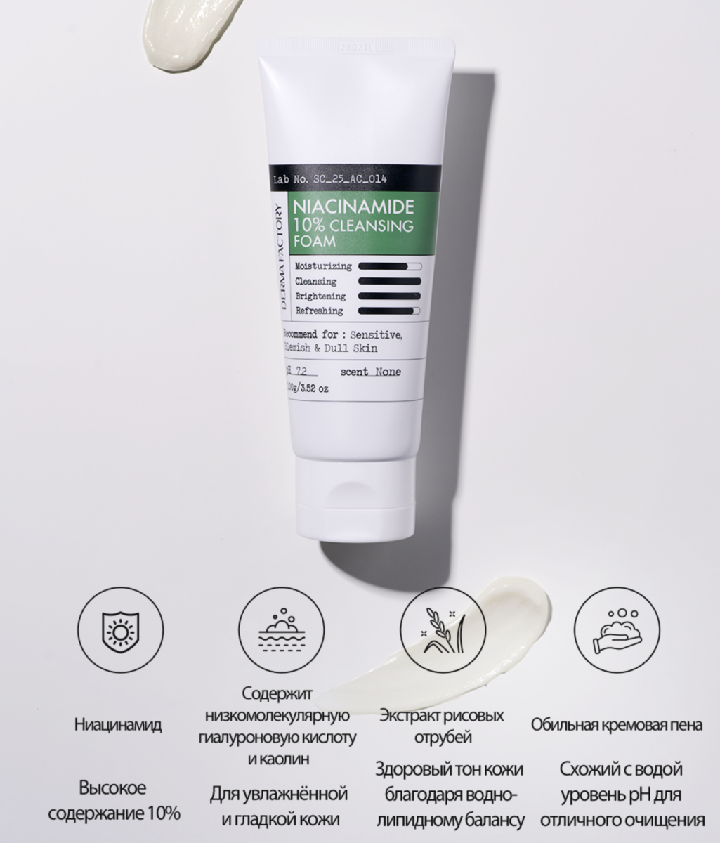 Мягкая пенка для умывания с 10% ниацинамидом от корейского бренда. Мягко очищает и за счет низкомолекулярной гиалуроновой кислоты глубоко увлажняет. Бережно очищает кожу, удаляя загрязнения, не пересушивая и не стягивая.