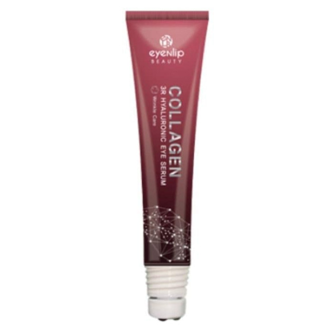 Сыворотка для кожи вокруг глаз с коллагеном Eyenlip Beauty Collagen 3R Hyaluronic Eye Serum увлажняет и питает нежную кожу, насыщает ее влагой и полезными веществами, сохраняет влагу внутри, устраняет сухость и шелушения. Сыворотка обладает высокими омолаживающими свойствами, она разглаживает морщинки, подтягивает кожу, противостоит появлению дряблости, осветляет зону вокруг глаз. Благодаря специальному дозатору с массажером, исчезает отечность и припухлость вокруг глаз, взгляд становится открытым и отдохнувшим, улучшается кровообращение. В состав входит гидролизованный коллаген в составе возвращает коже тонус, разглаживает ее, повышает упругость и эластичность. Увлажняет кожу, образует невидимый защитный барьер, который препятствует испарению влаги. Экстракт прополиса в составе обладает мощными антибактериальными и регенерирующими свойствами. Улучшает тон, наполняет кожу сиянием. Тонизирует, смягчает и успокаивает эпидермис. Молочные протеины запускают процессы регенерации, питают и смягчают кожу, делают ее бархатистой и приятной на ощупь. Они богаты аминокислотами, за счет чего отлично восстанавливают кожу. Также они оказывают противомикробное и заживляющее действие.